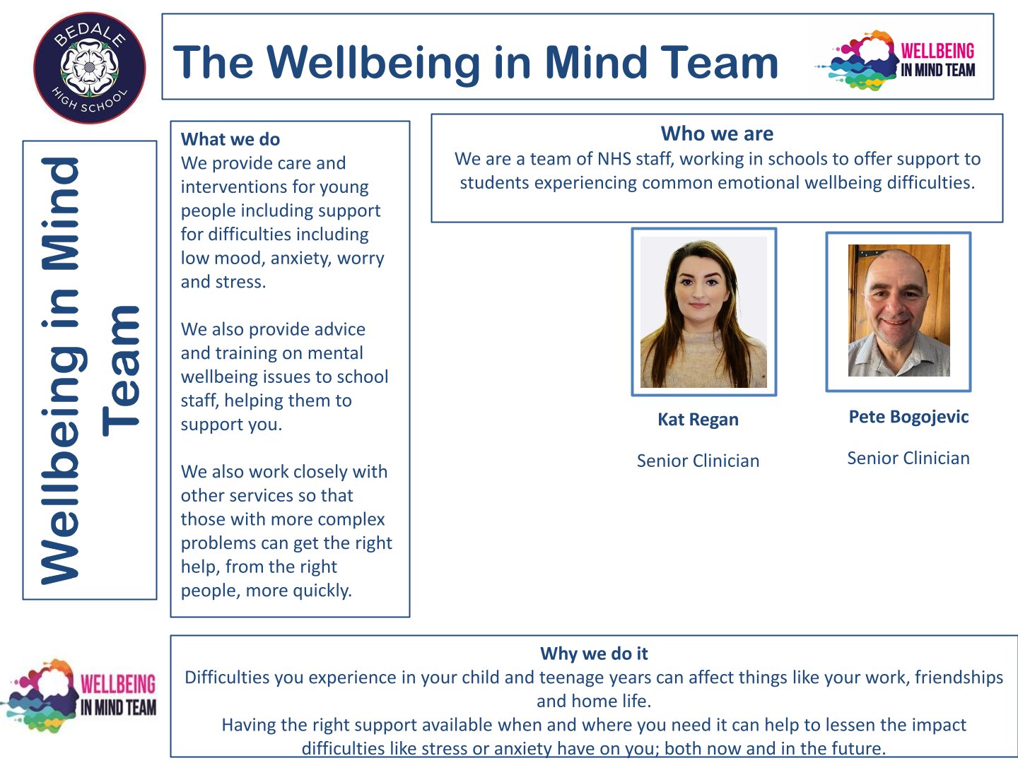 The Wellbeing in Mind team at Bedale High School consists of: